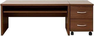 [山善] ローデスク・袖机(2点セット) 幅90×奥行45×高さ43cm ワイド スライドレール(こぼれ止め) 引き出しA4ファイル対応 汚れ・傷に強い天板(配線用コード穴) 組立品 ウォルナット CLD-2P(WL) 在宅勤務