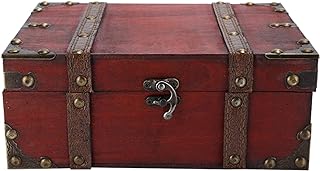 Brrnoo ヴィンテージ木製ストレージボックス デスクトップストレージボックス 装飾宝箱 ジュエリーチェスト メタルロック 木製ストレージ 装飾記念品チェスト - 9.25 x 6.3 x 3.75インチ (赤)