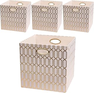Posprica ストレージビン 11×11 ファブリックストレージキューブ 折りたたみ式ボックスコンテナ引き出し (4個、アクア/ゴールドランタン)