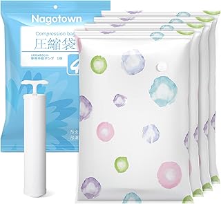 Nagotown ふとん圧縮袋 4枚組 【100×80cm×4枚 ポンプ付き】 布団圧縮袋, 衣類圧縮袋, 圧縮袋 布団, 圧縮袋, 防塵防湿, カビ、ダニ対策, 防虫 布団/毛布/衣類/枕収納 掃除機対応 収納/引越し/衣替え/旅行/出張 真空パック