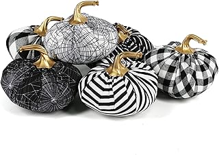 Tinsow 6個 人工生地 かぼちゃ デコレーション 4.7インチ ブラックとホワイト パンプキン ハロウィン 感謝祭 ゴシックスタイル パンプキン 秋の収穫 ホームデコレーション用 (ブラックとホワイト、6)