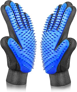 【2020革新デザイン】 ペット グルーミング 手袋 グローブ アップグレード 5本指 デザイン 毛 除去 犬 猫 馬 脱毛 カット ツール ブラシ トリミング(1ペア 青)