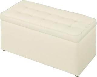 収納スツール 長方形 収納ボックス PVC レザー ファブリック オットマン ベンチ スツール チェア おもちゃ箱 北欧 おしゃれ (アイボリー)