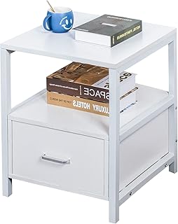 SoBuy ベッドサイドテーブル ナイトテーブル 引き出し付き サイドテーブル おしゃれ 幅45 白/北欧 コンパクト シンプル サイドチェスト 電話台(FRG258-W/ホワイト)